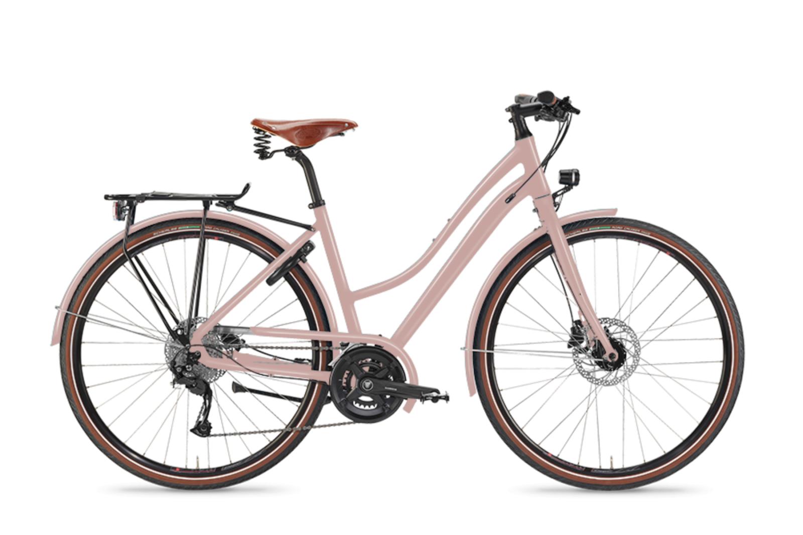 Bei diesem Trekkingvelo sind Velofreunde "hin und weg". Der in Rahmenfarbe lackierten Kettenschutz und Schutzbleche lassen es wie aus einem Guss wirken.