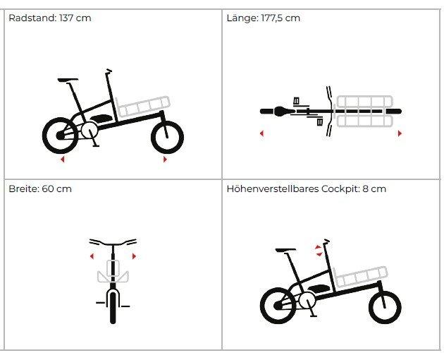 Ausstattung: EP6 Motor (85Nm), 504 Wh-AkkuShimano, Shimano Nexus 5-Gang Nabenschaltung, Kettenantrieb, Magura CT Scheibenbremsen, vorne ein 16-, hinten ein 18-Zoll Rad mit einem 55mm breiten Cargobike-Pneu